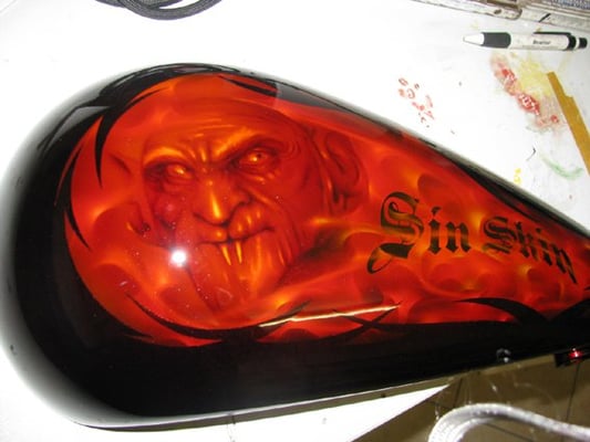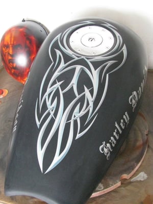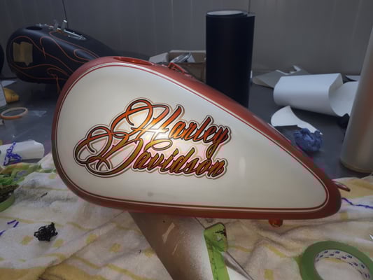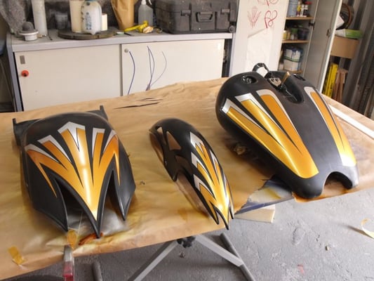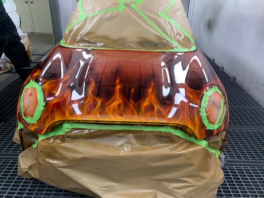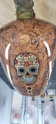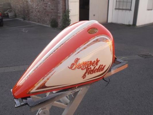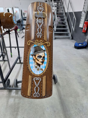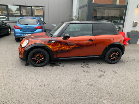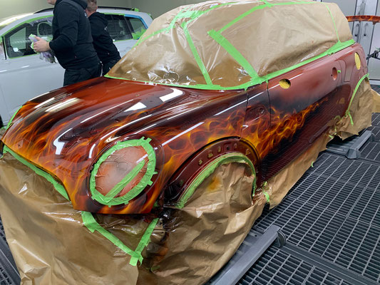 Hier ist die Kreativwerkstatt, Ideenschmiede - wie auch immer man es nennen mag. Hier wird es meist bunt und auch eigentlich ALLES umgesetzt. Unser Fachmann gehört noch dem alten Handwerksadel an und bedient von der einfachen Folierung bis zur aufwendigen Beschriftung und Werbeflächengestaltung, vom individuellen antiqisiereten Airbrush oder auch Custompainting bis hin zum grossflächigen realistischen Kirmeswagen-Sujet, ALLES vom ersten bis zum letzten Schritt. Wir sind sehr stolz auf unseren hauseigenen Künstler Marc Rogowsky und übergeben ihm die Show.